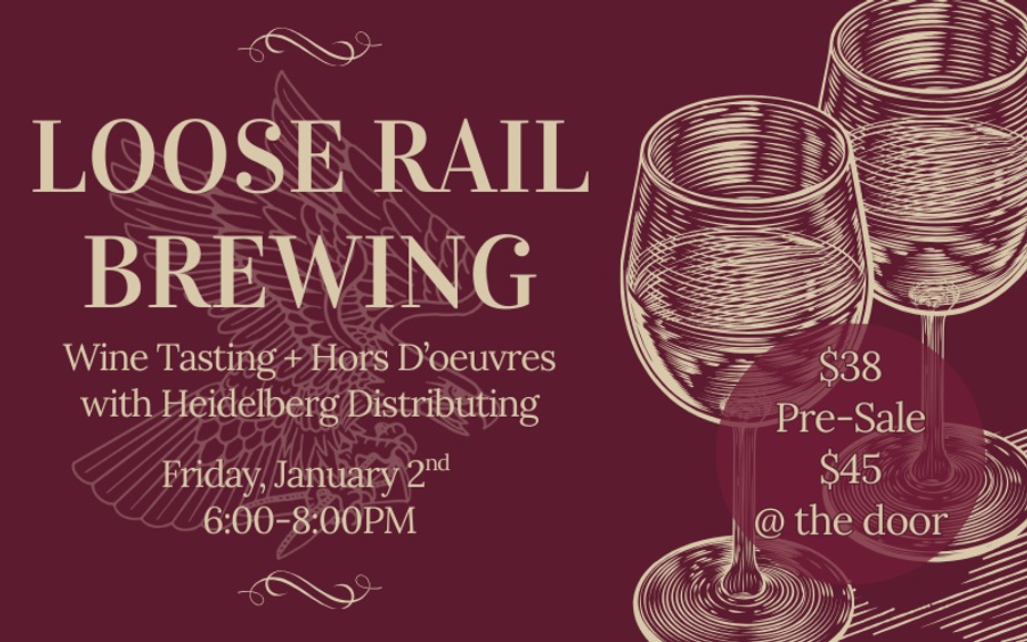 Join Loose Rail Brewing this New Year's weekend as we host a special wine tasting in collaboration with Heidelberg Distributing. It’s the ideal way to continue the celebratory energy by exploring a curated selection of wines in a welcoming setting. You will have the chance to sample and compare different regions and profiles, discovering new favorites along the way.