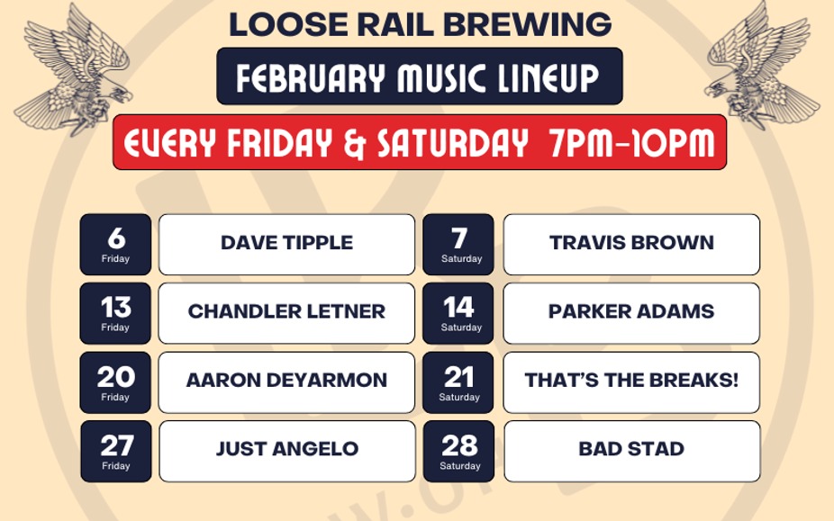 Weâre excited to welcome Parker Adams to the Loose Rail taproom on Saturday, February 14th at 7 PM. A New Lexington native and Ohio University music standout, Parker brings a massive range to the stageâfrom 1960s rock classics to soulful modern folk and country. Whether heâs on the piano or the harmonica, itâs a show you donât want to miss.Â