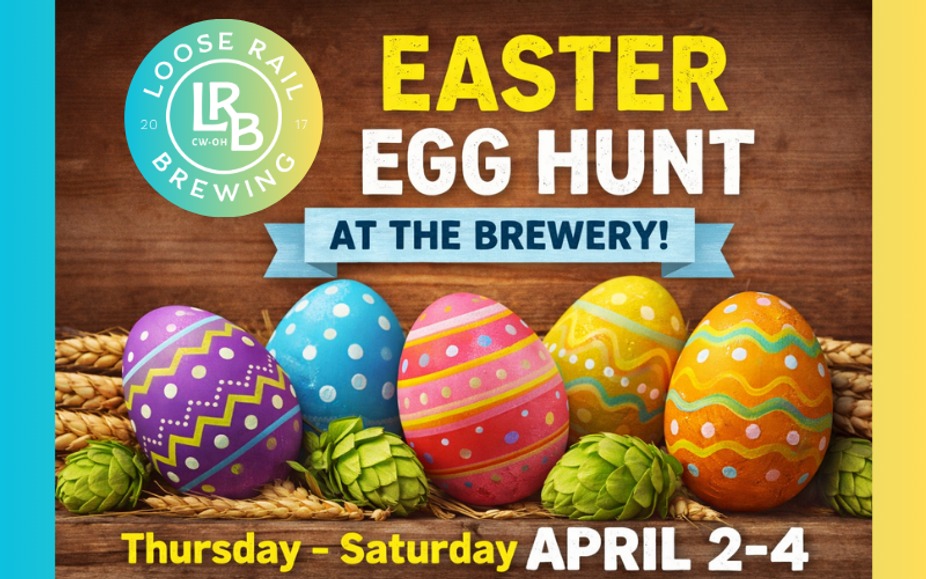 Join us at Loose Rail Brewing for an Easter Egg Hunt happening Thursday–Saturday, April 2–4. We’re hiding eggs all around the brewery each day — and yes, there are prizes & giveaways in EVERY egg. No duds. No sad baskets. Just wins. Prizes for all ages!