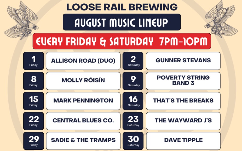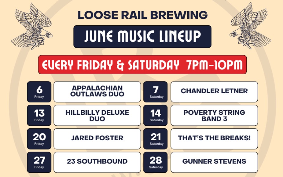 The boys are back! Join us for a high-energy Saturday night as the Poverty String Band Trio returns to the Loose Rail taproom.
