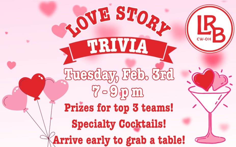 Join us on Tuesday, February 3rd at 7:00 PM for a trivia night dedicated to the greatest love stories ever told. We’re talking classic literature, iconic rom-coms, celebrity power couples, and maybe a few "it's complicated" moments from history.