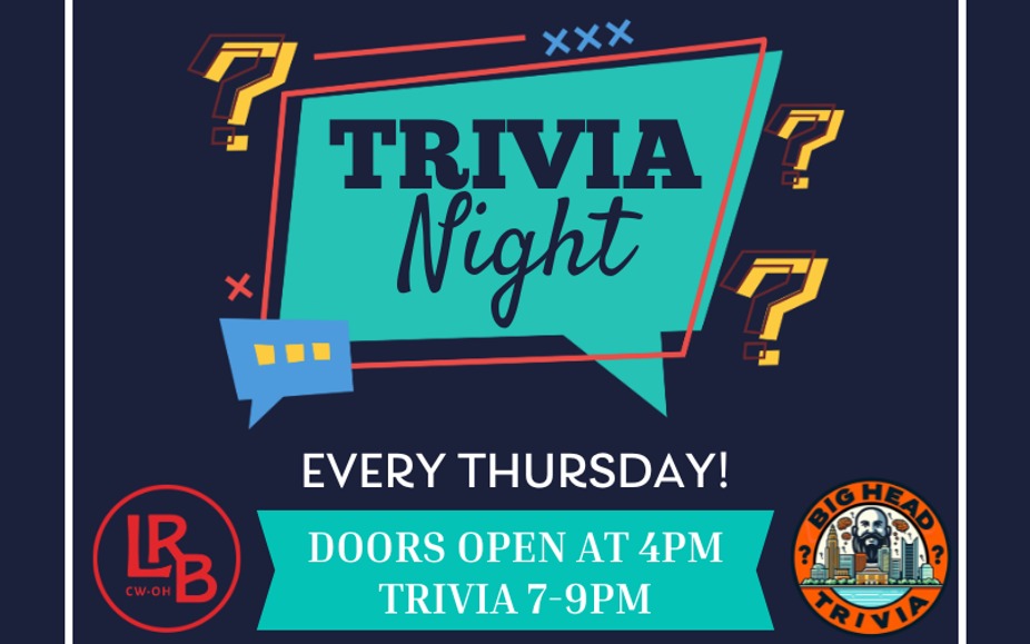 Join us on Thursdays for Big Head Trivia! Trivia starts at 7pm & top 3 teams win LRB gift cards! First Place $25, Second Place $15, Third Place $10.04:00 PM - 06:00 PM