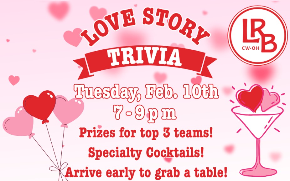 Join us on Tuesday, February 3rd at 7:00 PM for a trivia night dedicated to the greatest love stories ever told. Weâre talking classic literature, iconic rom-coms, celebrity power couples, and maybe a few "it's complicated" moments from history.