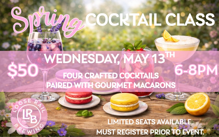 🌸🍸 Spring Cocktail Class & Macaron Pairing at Loose Rail Brewing 🍸🌸