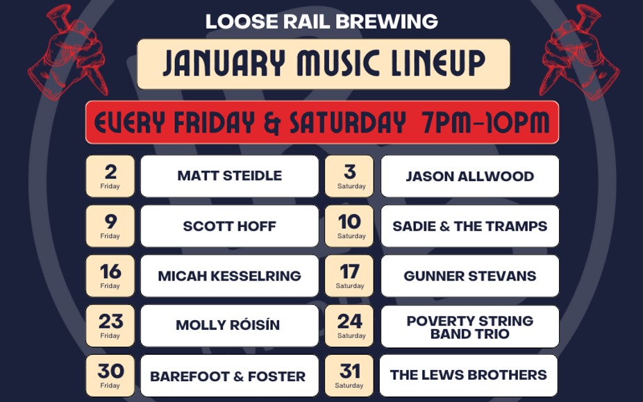 When: Saturday, Jan 3 | 7:00 PM – 10:00 PM (typical set time) Where: Loose Rail Brewing, Canal Winchester Cover: Free!